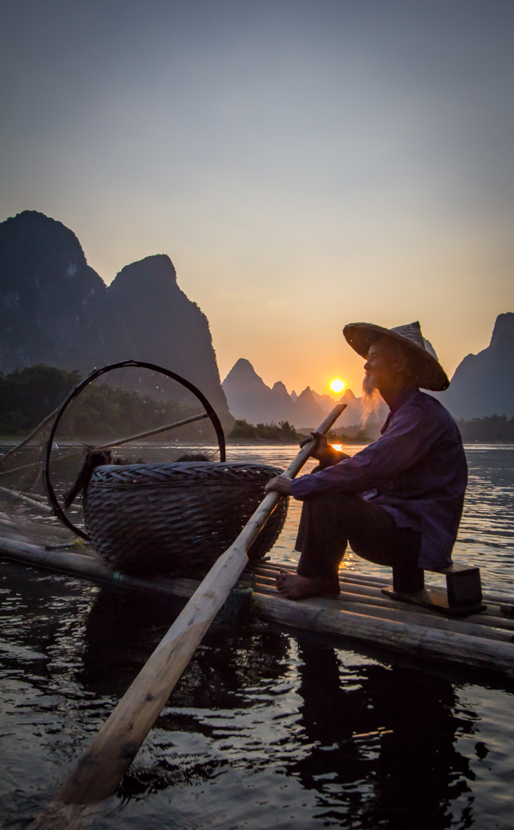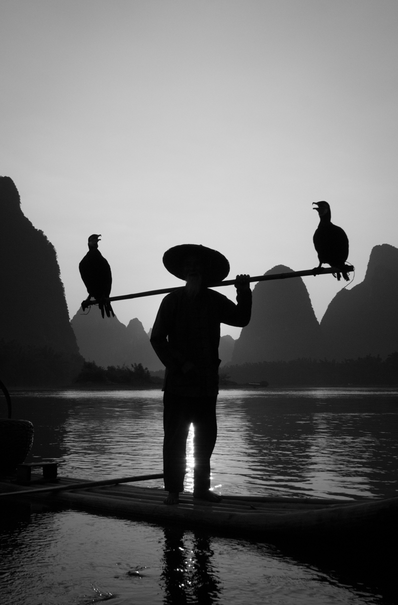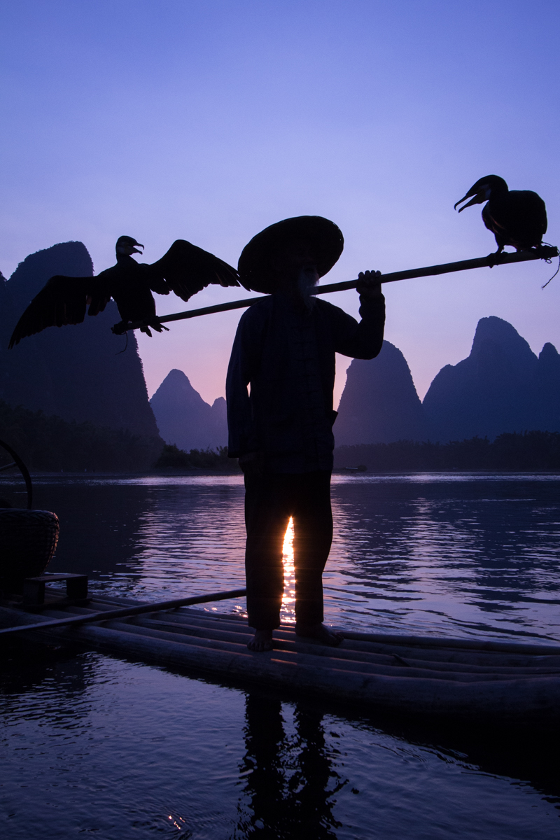 —Photographing cormorant fisherman close to Guilin.