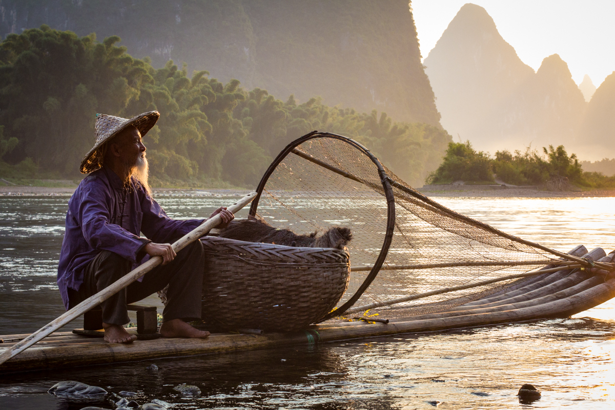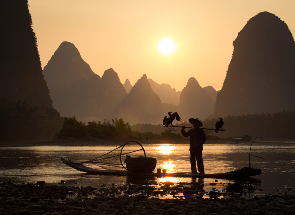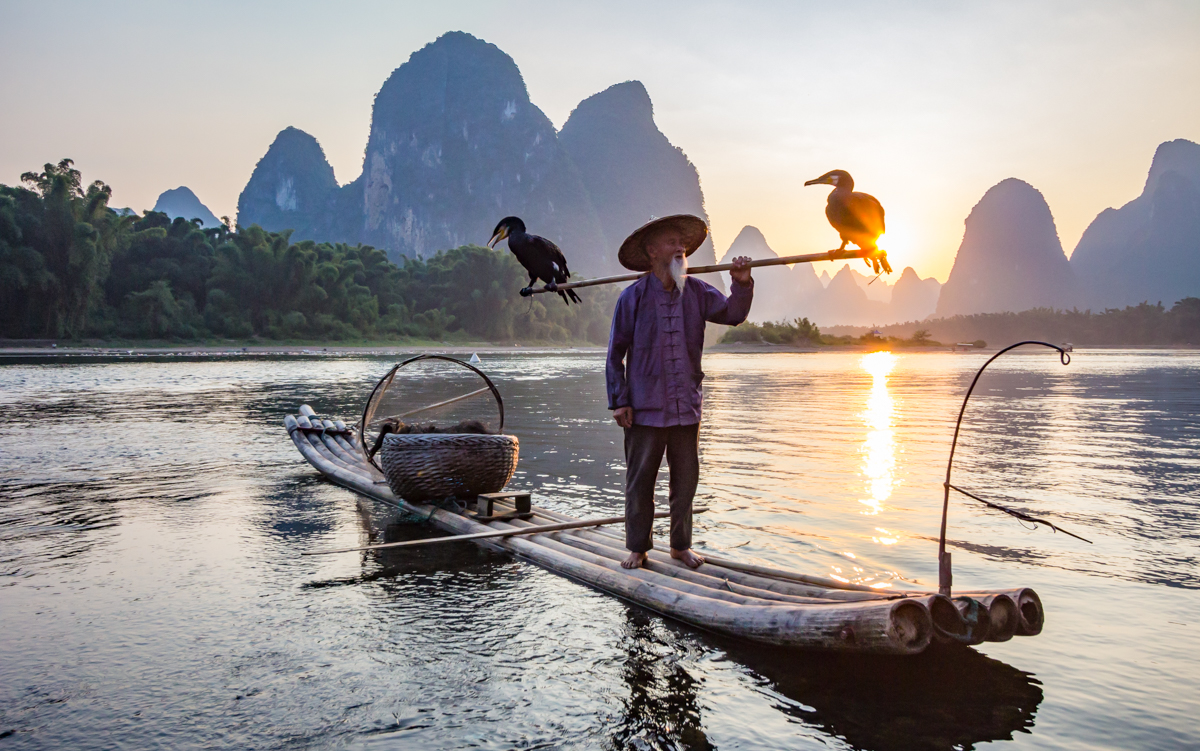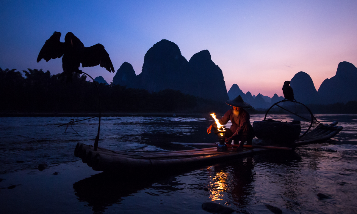 —Photographing cormorant fisherman close to Guilin.